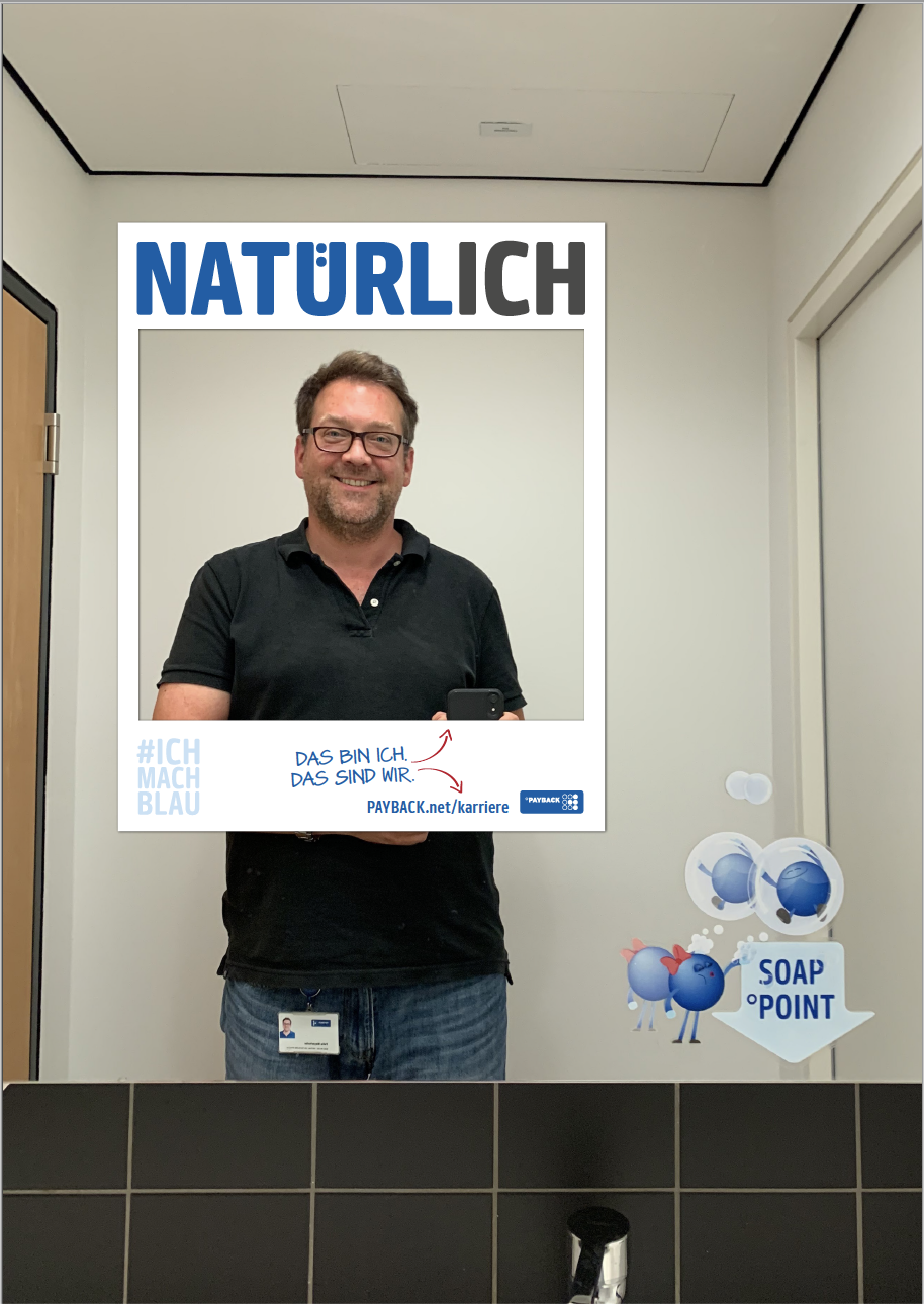 PAYBACK wünschte sich, an seinem Sitz in München Diversität zu zeigen. Ich wollte dabei nicht einzelne Gruppen wertschätzend hervorheben, sondern Diversität als etwas ganz natürliches zeigen. Jeder Kollege hat eine besondere Geschichte zu erzählen. Die Kampagne zeigte Diversität mit über 20 Kollegen an zahlreichen Touchpoints im ganzen Haus. Vom Kick-off bis zum Klo.
